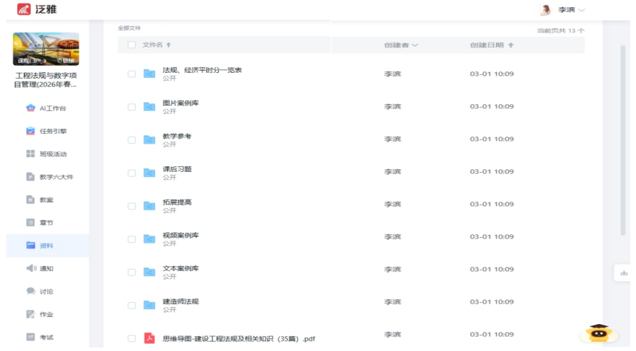 依托超星平台,打造课前自主预习、课中互动探究、课后拓展提升的混合式教学模式。课前,教师上传工程法规案例解析、微课视频、项目管理实操视频等数字化资源,学生提前完成基础知识学习,完成针对性预习任务;课中,摒弃单向讲授,通过小组研讨、案例辩论、情景模拟等等互动形式,聚焦重难点问题深度探究,教师化身引导者与答疑者,针对性解惑点拨;课后,布置项目实战作业、法规案例分析等拓展任务,辅以线上答疑、形成完整学习闭环,兼顾个性化学习与集体互动提升。
