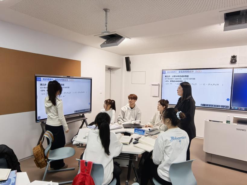 调研结束后,各小组对收集的信息进行整理分析,并结合所学估价方法进行综合评估。在阶段性汇报环节,各小组以PPT形式展示调研成果,阐述估价思路与方法选择。三位教师联合点评,副教授侧重估价逻辑,高级工程师从行业角度提出建议,年轻教师记录共性问题。其他同学也积极参与提问讨论,在思辨交锋中深化对估价知识的理解,让估价逻辑从模糊走向清晰。
