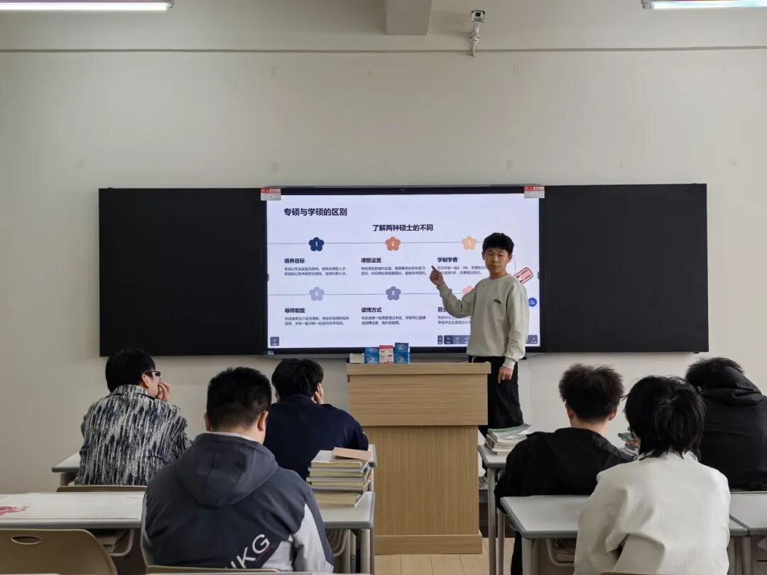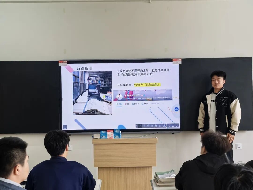 分享会上,优秀学生代表结合他们自身实战经历,从院校选择、备考策略、时间管理、心态调节等多角度展开分享。