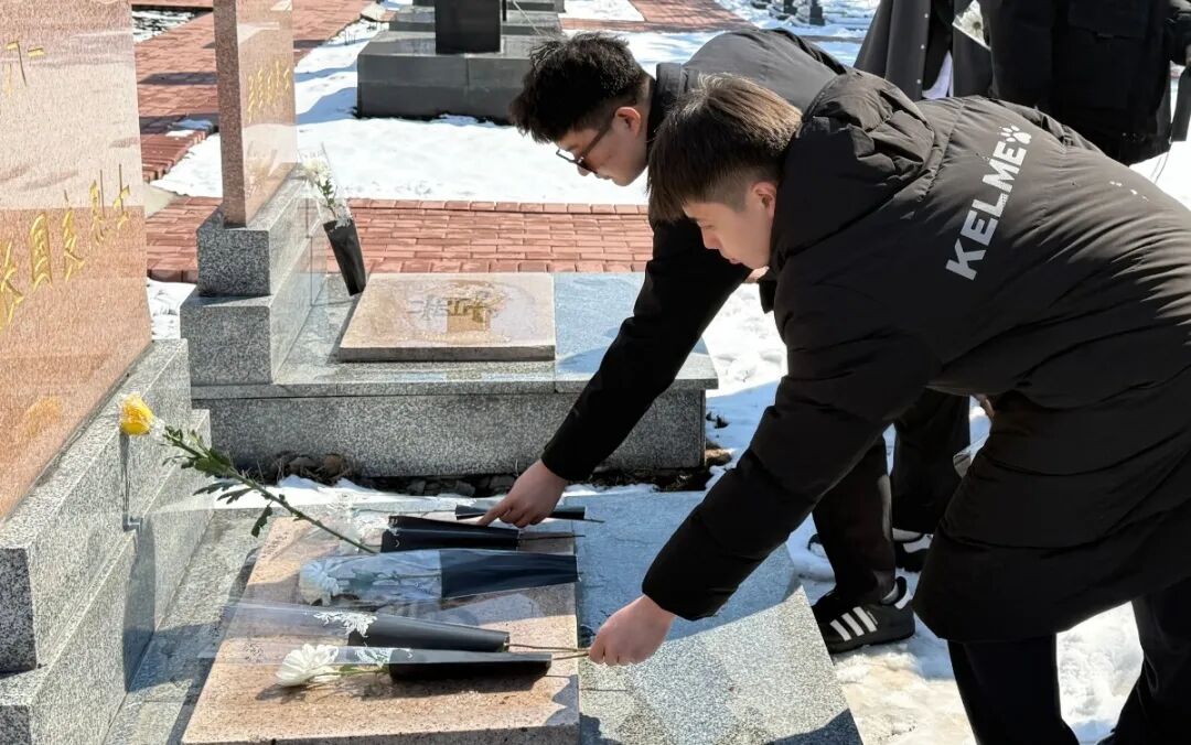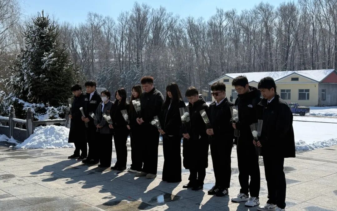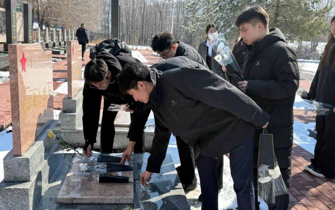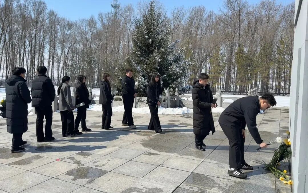 随后,师生们前往双城区烈士陵园进行祭扫。在庄严肃穆的烈士纪念碑前,全体人员整齐列队,肃立默哀,并向长眠于此的革命先烈敬献鲜花,鞠躬致敬。整个过程简朴、庄严而充满敬意。在无声的缅怀中,历史与现实交汇,革命先辈为国为民的崇高理想与青年一代肩负的时代责任产生深刻共鸣。