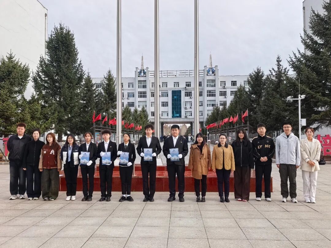 升旗仪式后,学院团总支书记孙尚玥为担任本次升旗任务的升旗手和护旗手颁发了“升国旗手资格状”。