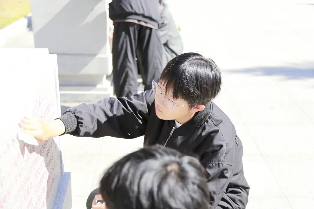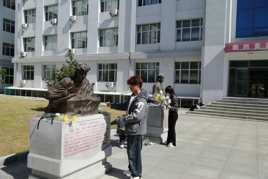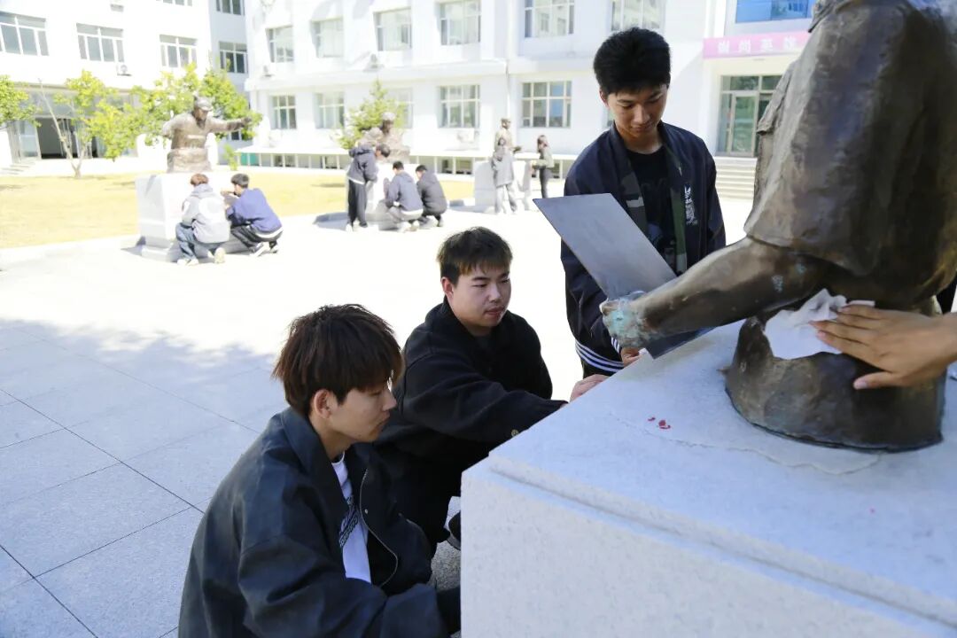 活动伊始,“新时代先锋”宣讲团成员王瑜同学深情讲述了黄继光、邱少云、雷锋等英模人物的光辉事迹,生动再现了英雄们的崇高精神和英勇壮举,深刻阐释了英烈们用生命诠释的忠诚与担当,令在场师生深受教育和感动。随后,全体师生肃立默哀,以无声方式表达对革命先烈的深切缅怀与崇高敬意。默哀结束后,同学们满怀敬意擦拭英模雕像,认真研读碑文事迹。此次实践既是对英模设施的维护,也是一次沉浸式的精神洗礼,显著增强了红色教育的实效性与感染力。