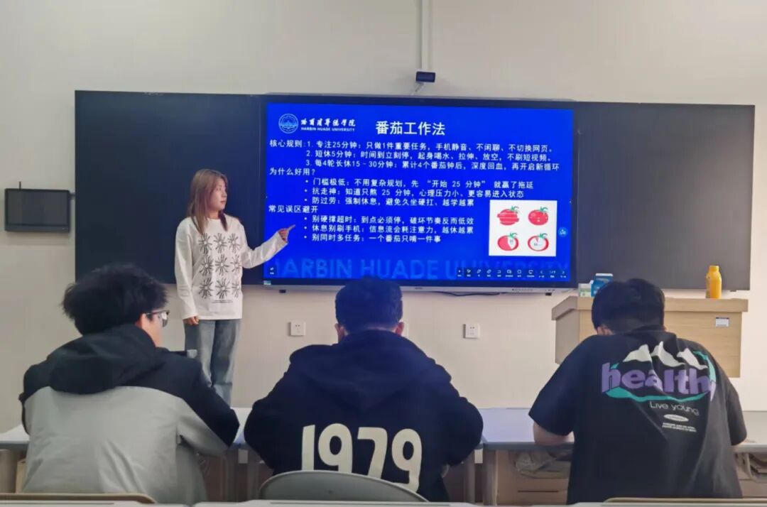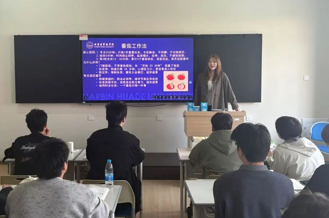 活动中,各班学习委员立足2024级学生课程学习实际,围绕番茄工作法“25分钟专注学习+5分钟短暂休息”的核心机制,通过步骤分解、实操演示、场景模拟等方式,系统讲解时间管理技巧。学习委员结合汽车工程、工程造价等专业课程特点,引导学生将该方法灵活运用于专业课刷题、知识点记忆、图纸绘制等具体学习场景,助力学生摆脱拖延低效的学习习惯,构建“专注—休息—复盘”的高效学习闭环。