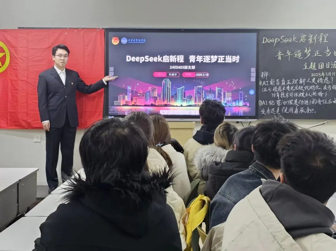 为深入贯彻落实习近平新时代中国特色社会主义思想,进一步开展团员青年思想政治引领工作,引导广大团员青年树立远大志向,努力成长为堪当强国建设、民族复兴大任的栋梁之才。3月20日,汽车与建筑工程学院团总支组织各团支部开展“DeepSeek启新程,青年逐梦正当时”的主题团日活动。