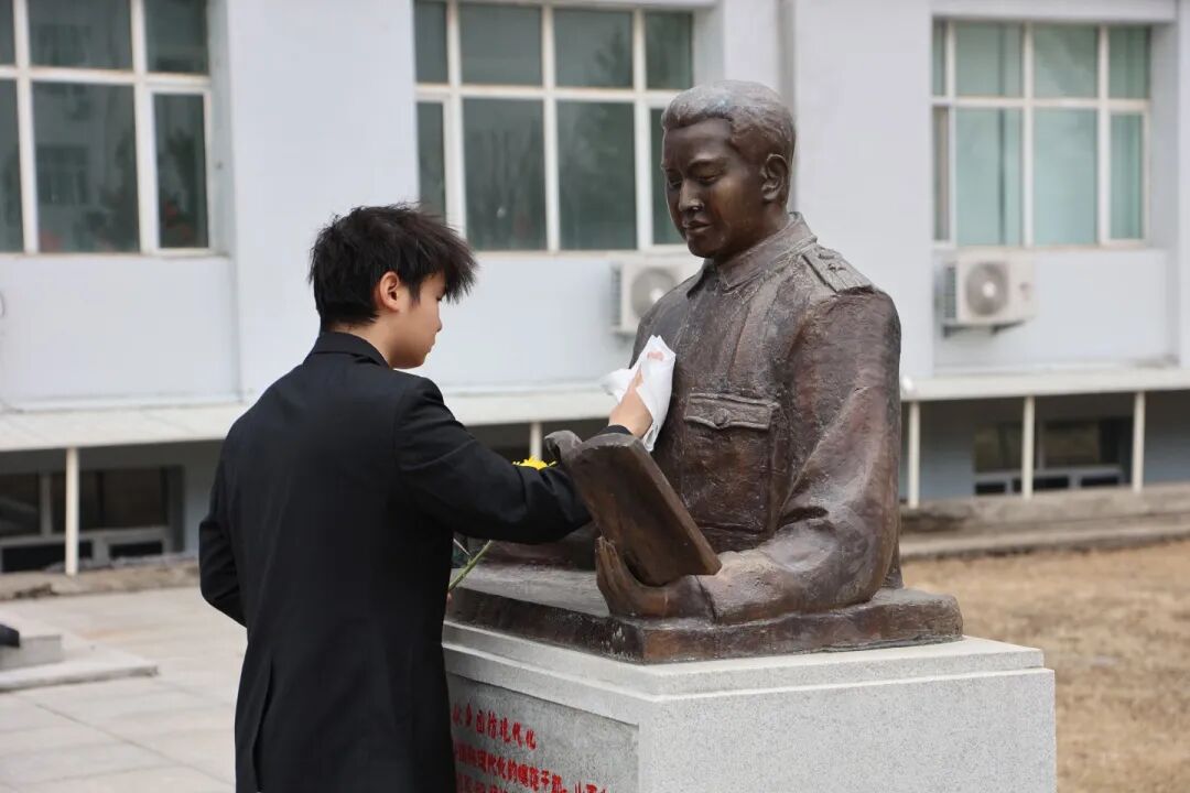 4月1日,汽车与建筑工程学院团总支组织团员青年代表开展清明祭英烈活动。同学们通过参观我校“百米国防教育长廊”,擦拭“全军十大英模”塑像,以实际行动弘扬爱国主义精神,让红色基因代代相传。英烈铜像前,团员青年们向先烈们敬献花束并表示“我们要传承先烈们‘为有牺牲多壮志,敢教日月换新天’的豪迈、‘苟利国家生死以,岂因祸福避趋之’的精神,让铭记更深刻,让传承更厚重。”