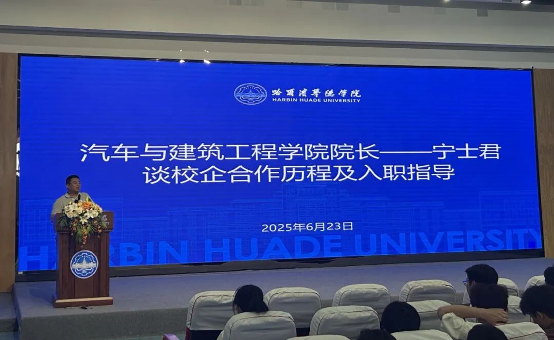 随后,汽车与建筑工程学院宁士君副院长详细回顾了学校与吉利集团深厚而坚实的战略合作历程。他强调,吉利集团“德才兼备、知行合一”的人才标准与哈尔滨华德学院“诚毅求真、笃学强技”的校训高度契合。他勉励同学们将所学的知识技能精准对接企业岗位需求,不断提升专业素养与综合能力,立志成为企业亟需的高素质应用型人才。