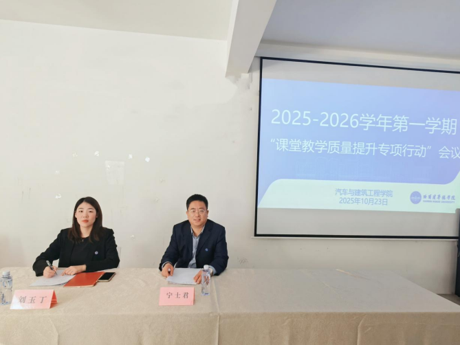 为深入践行“老师‘走’起来,师生‘动’起来,课堂才能真正精彩”的教学理念,切实提升课堂教学质量,营造“全员关注课堂教学、共同提升教学实效”的良好氛围。近日,汽车与建筑工程学院组织召开2025-2026学年第一学期课堂教学质量提升专项行动会议。副院长宁士君(主持工作)、副院长刘玉丁及全体教师参加会议。