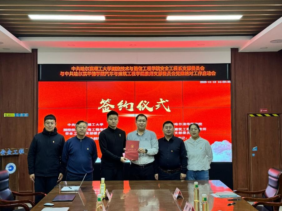 11月13日,我校汽车与建筑工程学院与哈尔滨理工大学测控技术与通信工程学院党建结对共建签约仪式在哈尔滨理工大学举行。汽车与建筑工程学院教师党支部书记、交通运输系主任周航,汽车与建筑工程学院教师党支部组织委员、实践教学中心主任于洪超,汽车与建筑工程学院教师党支部宣传委员李欣,哈尔滨理工大学安全工程系教师党支部书记、安全工程系副主任、实验中心主任牛訦琛,安全工程系教师党支部组织委员、安全工程系主任王博,安全工程系教师党支部纪检委员马德仲出席仪式。