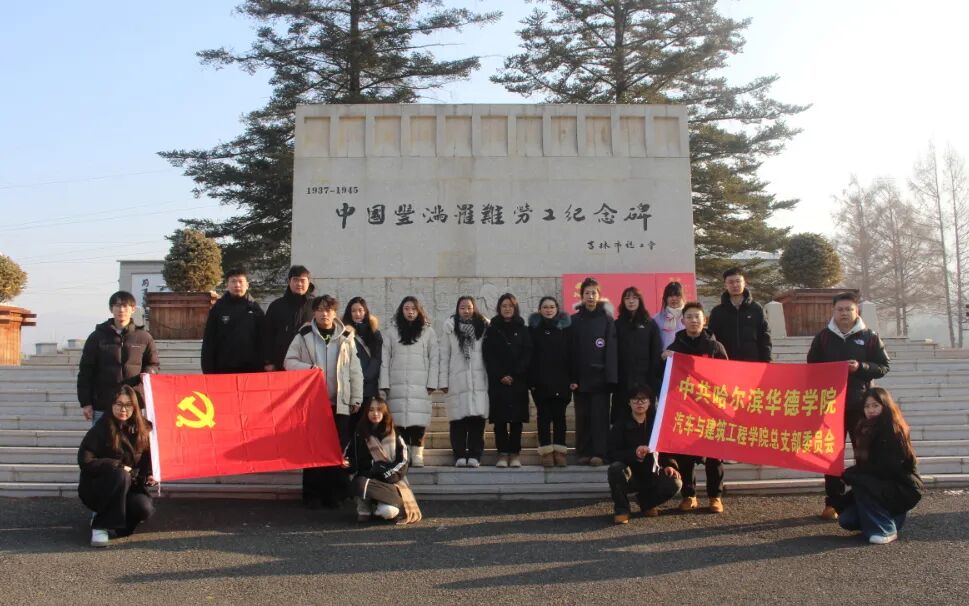 2025年12月13日—14日,汽车与建筑工程学院党总支赴吉林市劳工纪念馆(丰满万人坑)、东北抗联第一军纪念广场、革命烈士纪念园区等红色基地,开展“筑牢信仰之基 培育时代新人”主题实践研学活动。汽车与建筑工程学院党总支带队,学院师生党员和入党积极分子代表、马克思主义学院教师党员代表以及“新时代先锋”宣讲团学生代表,共计20人参加研学。