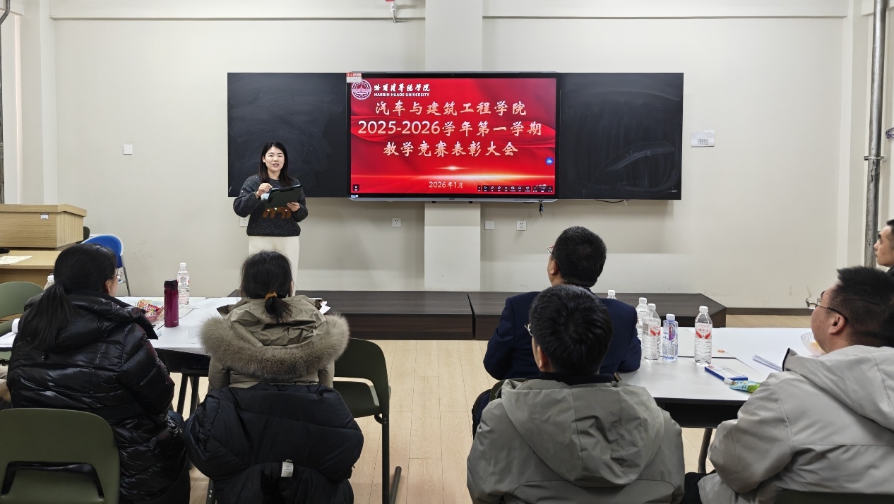 1月3日,汽车与建筑工程学院2025-2026学年第一学期教学竞赛表彰大会在学院报告厅隆重举行。大会对在2025学年精彩课堂院赛获奖教师、第二届哈尔滨华德学院青年教师教学竞赛院赛获奖教师,以及在第二批校级一流本科课程遴选中荣获院级一流课程的课程组负责人进行了集中表彰。学院副院长刘玉丁主持本次表彰大会。
