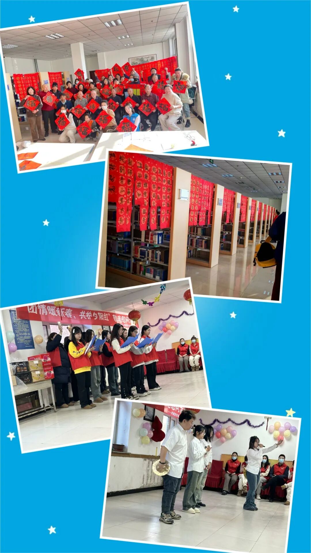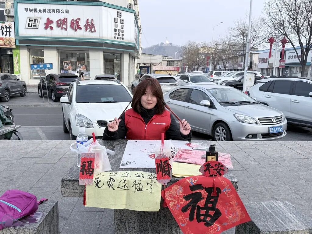 团队成员走进家乡养老机构,开展“暖冬送福”主题活动。他们现场挥毫书写春联、赠送“福”字,一幅幅满载祝福的红色对联映衬出浓浓年味。同学们还精心准备了歌曲、朗诵等文艺节目,与老人们促膝交谈,倾听往昔故事,关心日常起居,在欢声笑语中传递真挚关怀与温暖陪伴,弘扬尊老敬老的传统美德。