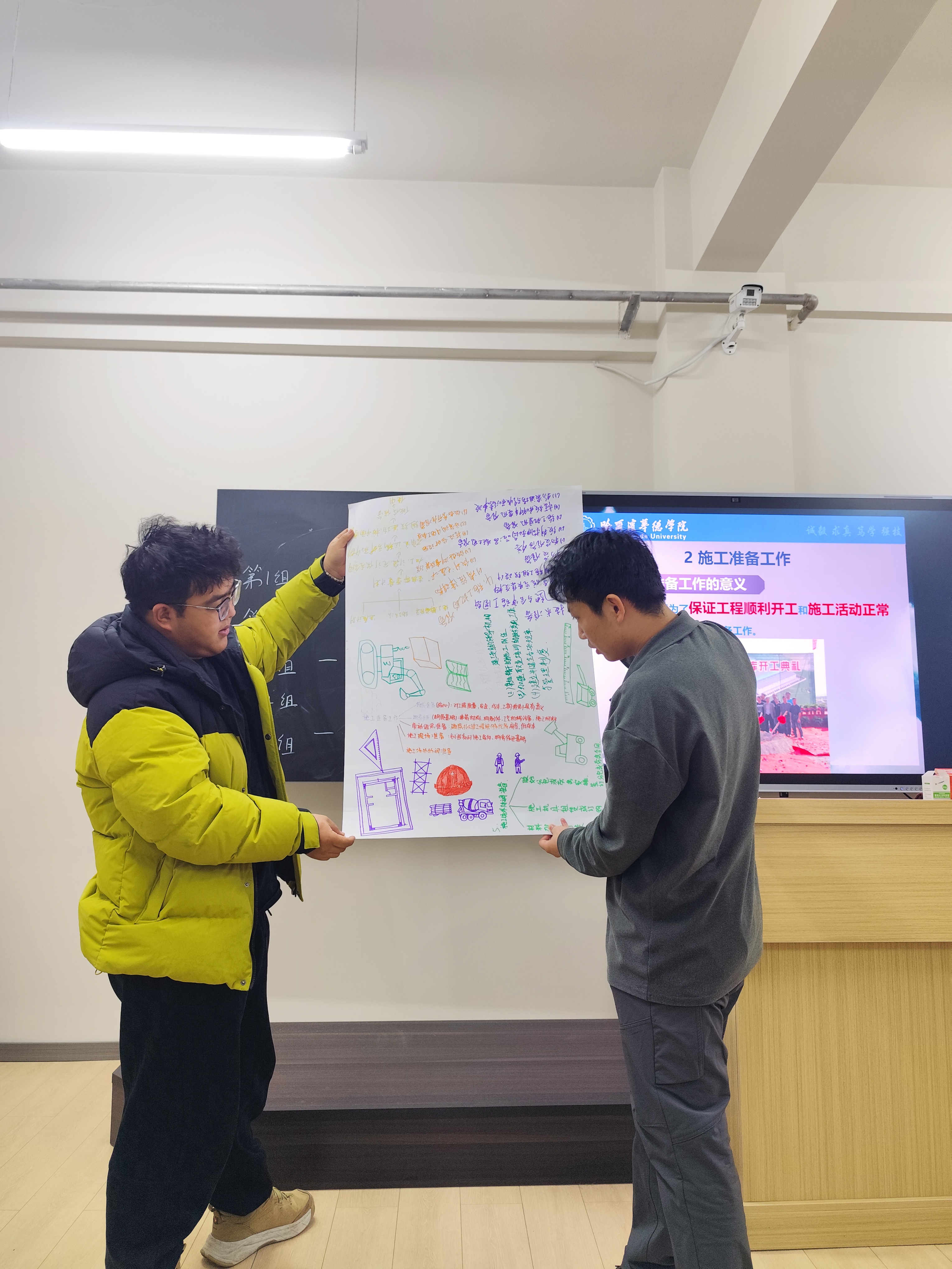 走进SC改革后的智能建造施工组织与概预算课堂,最直观的变化是学生的状态:他们不再是埋头记笔记的“听众”,而是围绕真实项目任务热烈讨论的“主角”。小组研讨中,学生们分工协作、各抒己见;辩论环节里,正反双方针锋相对、碰撞思维;沙盘推演时,团队成员反复测算、推敲方案。彩色记号笔在纸上勾勒出思考轨迹,热烈的讨论声在教室此起彼伏,每一张专注的面孔都诉说着课堂的活力。从被动接受到主动探究,从个体学习到团队共创,学生们在真实任务驱动下,不仅掌握了知识技能,更收获了解决问题的信心与能力。