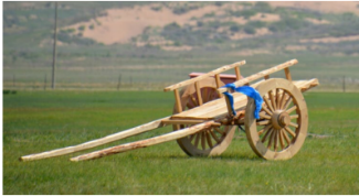 参赛队需在规定时间内完成勒勒车模型的制作(竹材制作),如图所示。模型由车架、车轮、车轴和轴承以及车架与动力小车的连接件等组成,其中车轴、轴承及用于固定轴承的轴卡由组委会统一提供,不允许对其进行任何改造加工。参赛队自行选择放置于车架上的载货质量。模型在动力小车牵引下通过克服赛道障碍物带来的冲击力以及避免倾覆等,完成运输任务。具体校赛内容,群内进行通知。